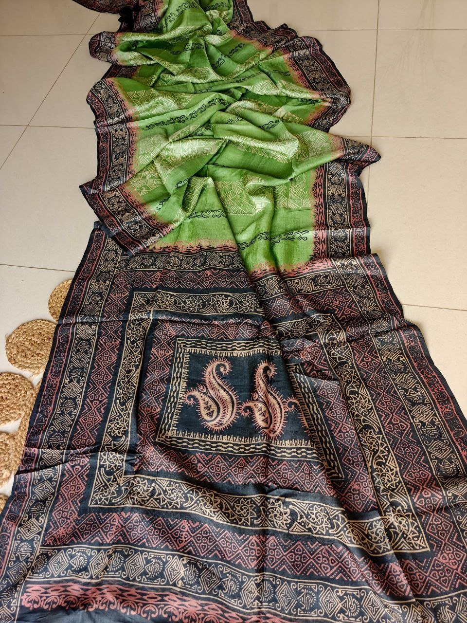 block printed 100% pure silk sareeBlock Printed 100% Pure Silk Saree
