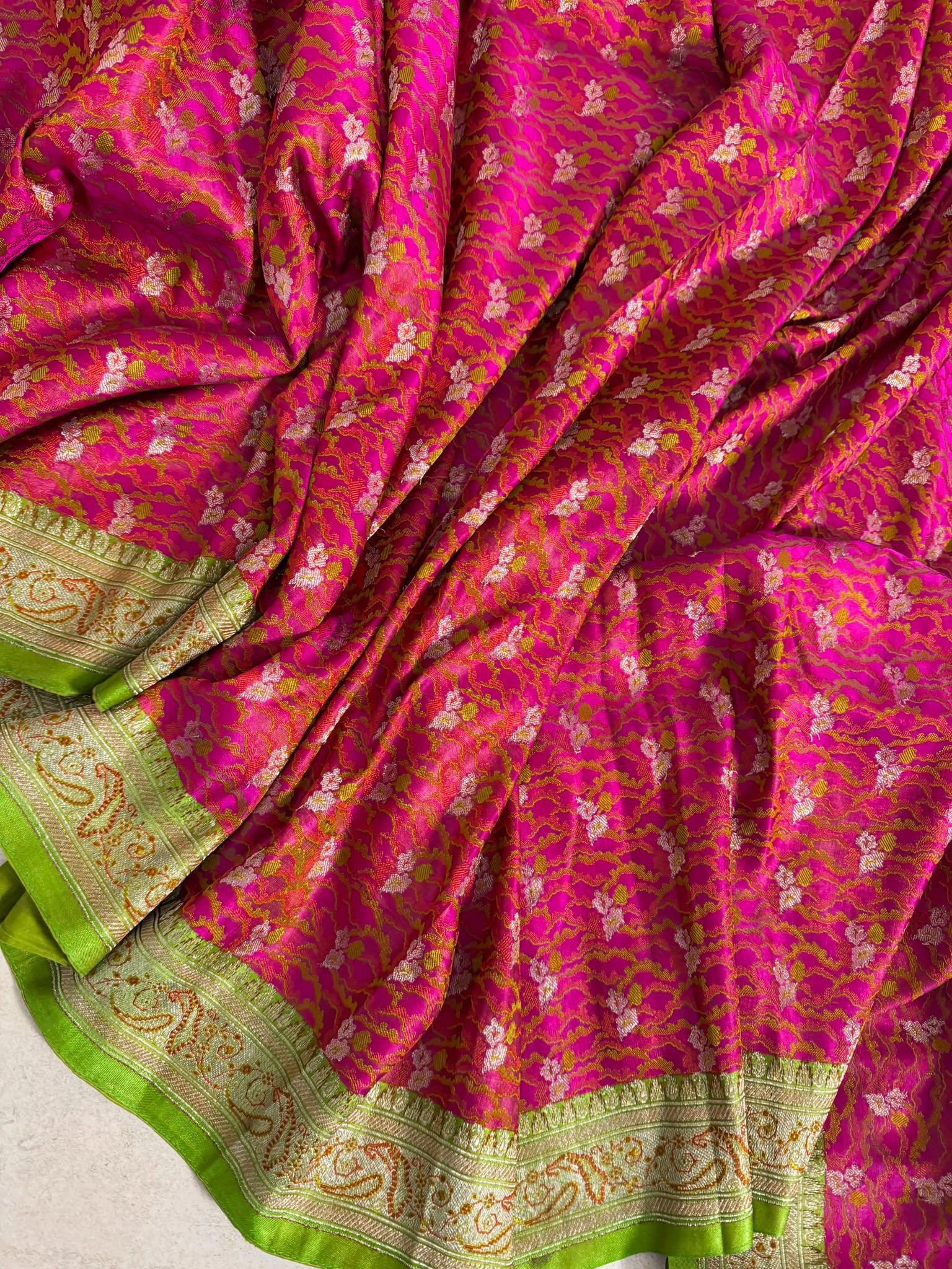 Sarees that are no longer woven are vintage. They can vary from 8 years older to 75 years older and still shine like new. Indian vintage silk sarees hold heritage importance that is no longer woven into sarees today. These sarees narrate stories and make for great heirloom pieces.