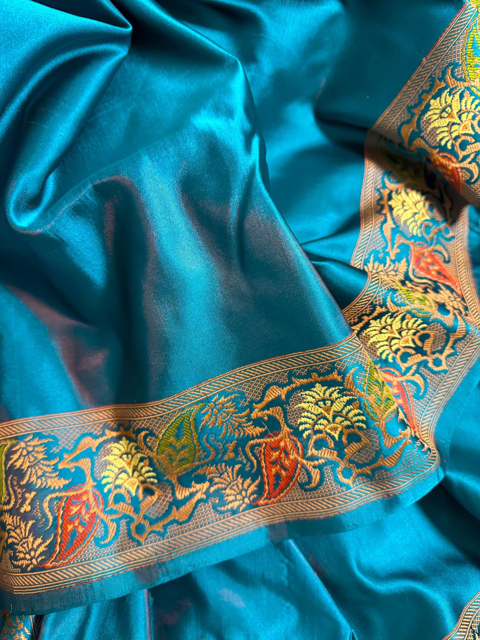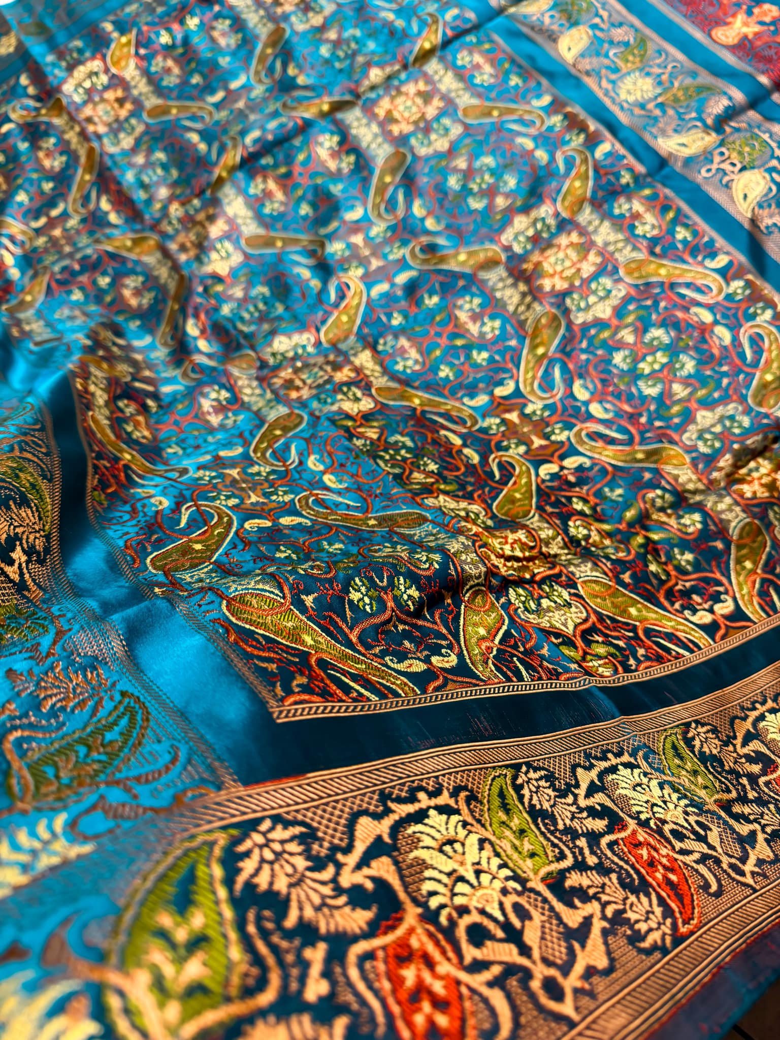Majestic Pure Mulberry Silk Banarasi in Oceanic Aqua Shade